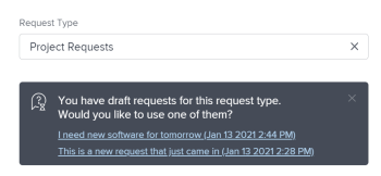 (Conditional) Select an available draft from the notification message displayed under the Request Type field.