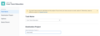 (Conditional) Continue to copy the task to the selected destination project without requesting access if you have access to add tasks to one of the tasks on the destination project.