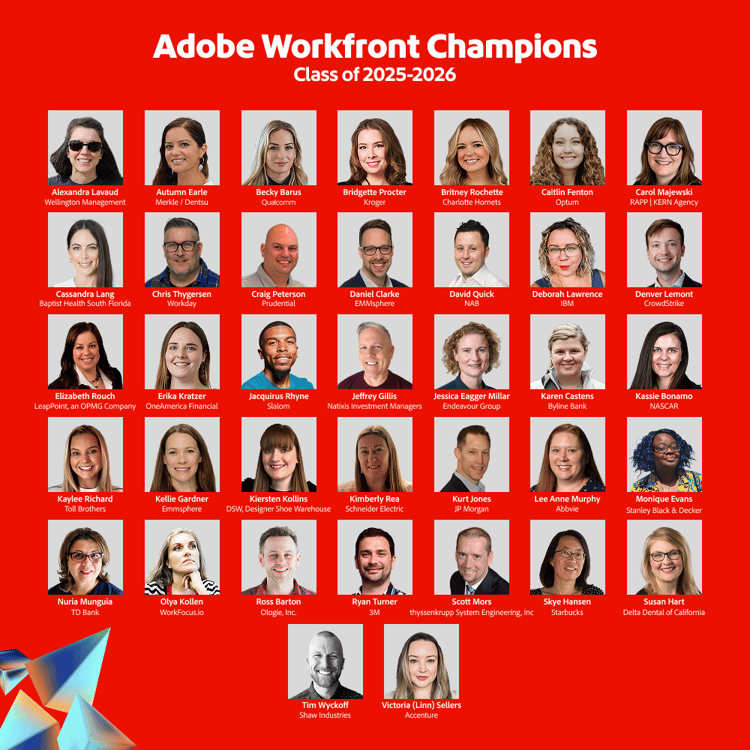 Taking the lead with our industry-leading enterprise work management application, introducing our first-ever cohort of Adobe Workfront Champions.
