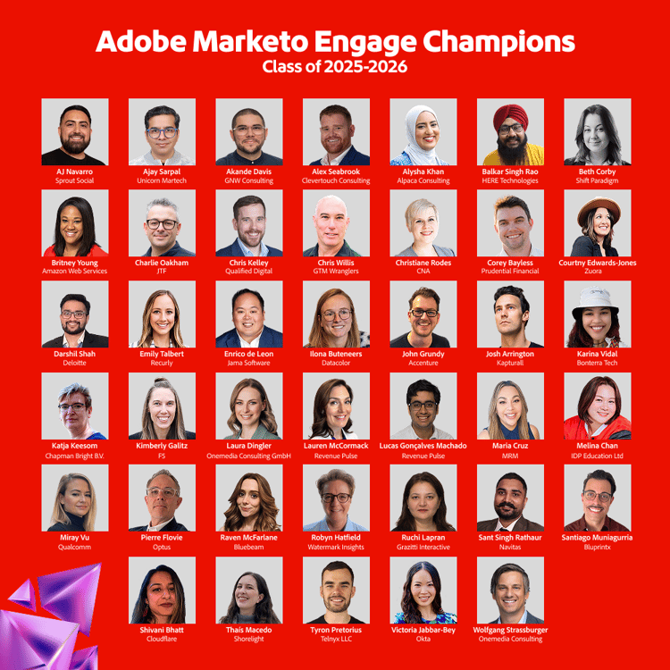 Exceling in marketing automation and our longest-running champion program — the blueprint that inspired all others — presenting the Adobe Marketo Engage Champions for 2025-26.