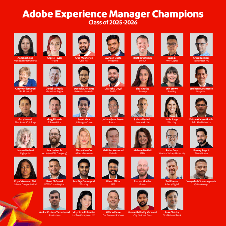 Flag bearers of our industry-leading content management and digital asset management systems, presenting the Adobe Experience Manager Champions for 2025-26.