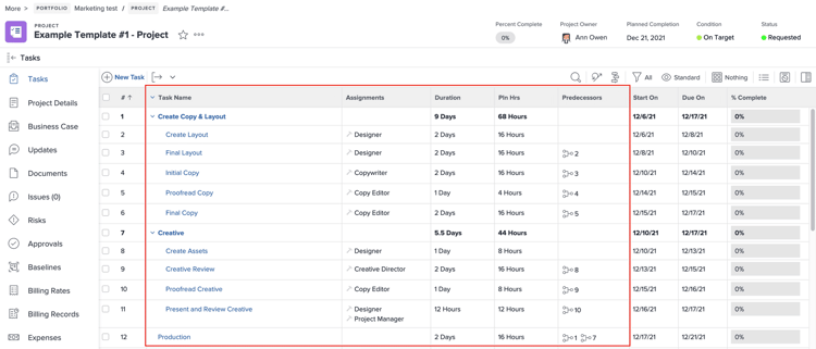 When a template is set up properly, it provides a good foundation for project managers to get projects created and started quickly. It also allows for efficient, effective changes once the project goes live.