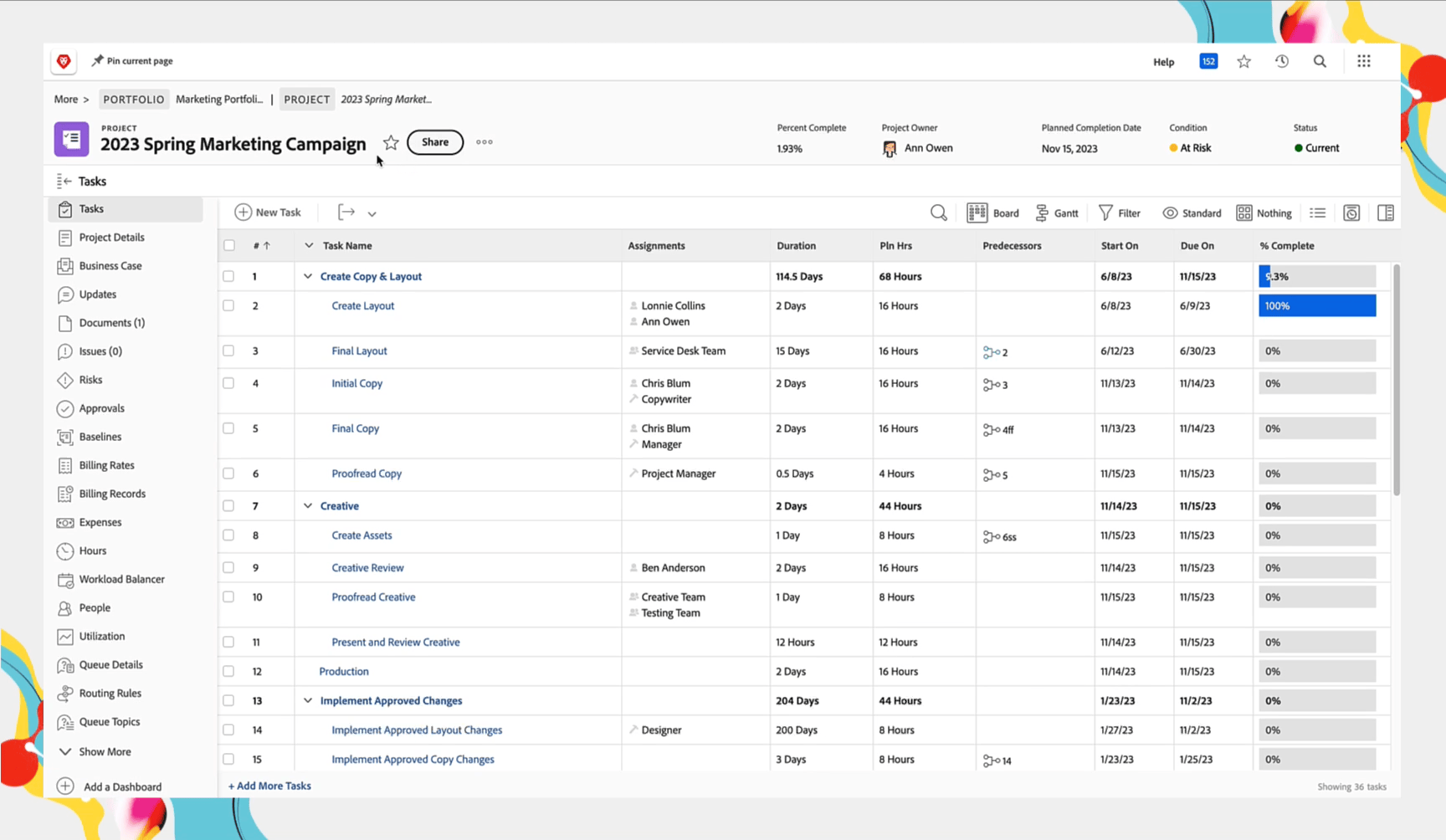 For example, a portfolio is shared with the creative marketing team. By default, the programs in that portfolio inherit the same permissions. And the projects within those programs inherit those same permissions.