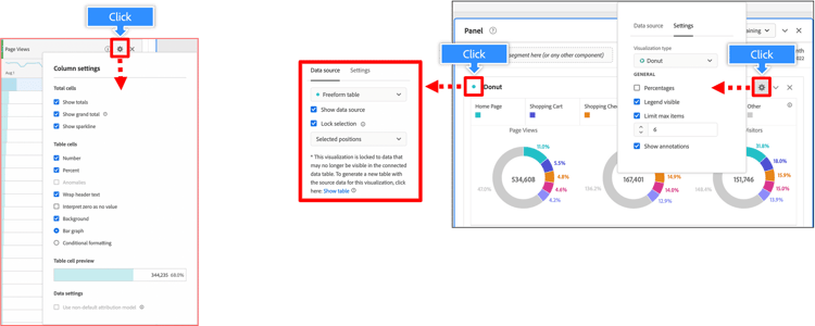 These additional click options allow you to customize column settings and visualization displays and also control the visualization settings.