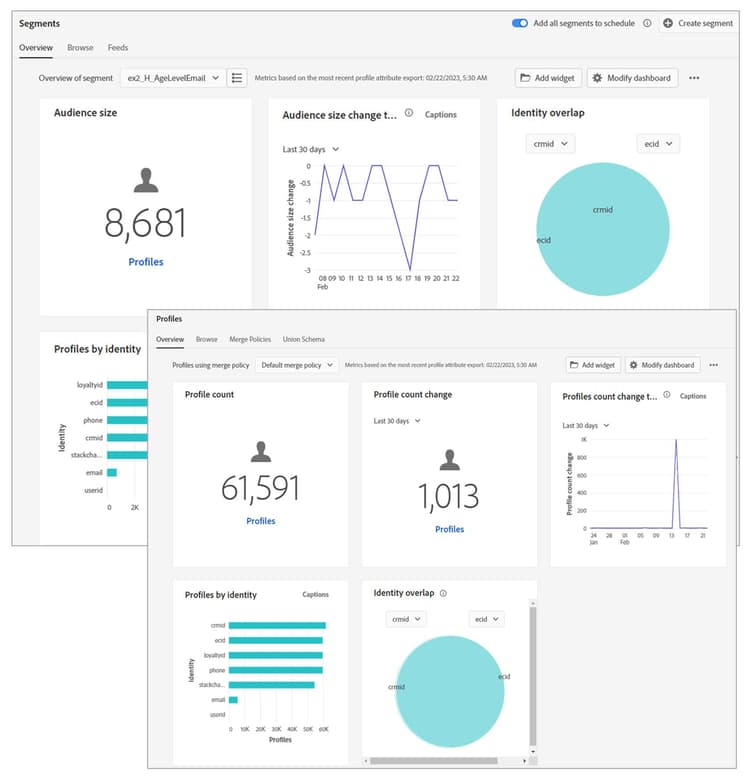 Dashboards provide out-of-the-box reporting on your organization’s data and are built directly into the marketer workflow within Platform. You can access the dashboards by navigating to the appropriate section within the UI for the dashboard you would like to view.
