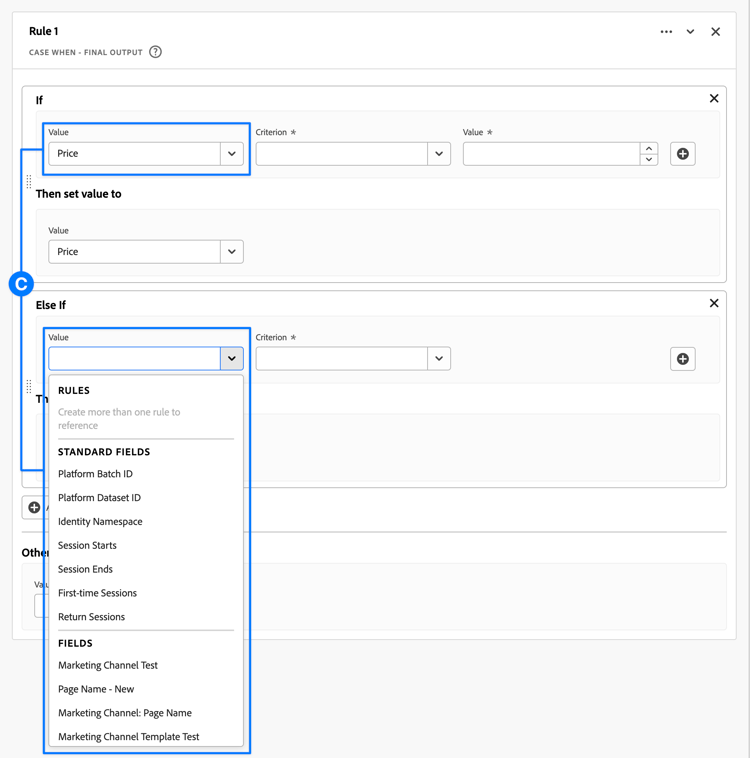 This function template uses a collection of rules to build marketing channels.