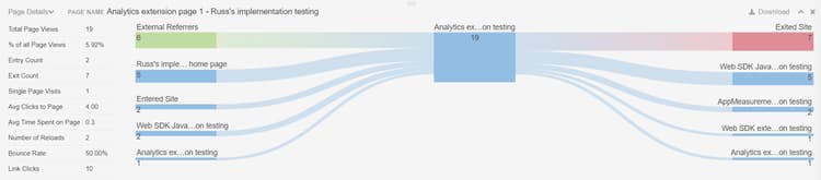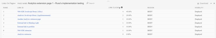 - Download: Exports the report to CSV. You can include the Links on page report, the Page report, and the Page flow report in the same download file.