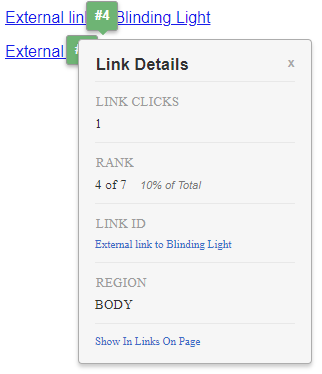 - Bubble: Top links receive a green bubble showing its numeric rank during the reporting period. You can change the bubble color in Settings.