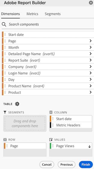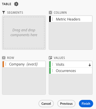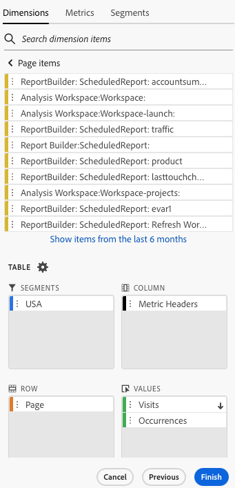 You can drag and drop items onto the Table or double-click an item name to add it to the Table builder.