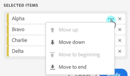 To move an item in the list, drag and drop the item or click … to display the move menu.