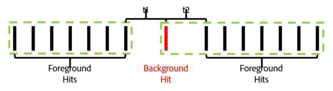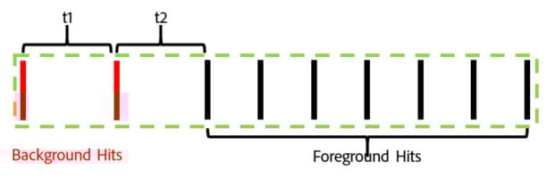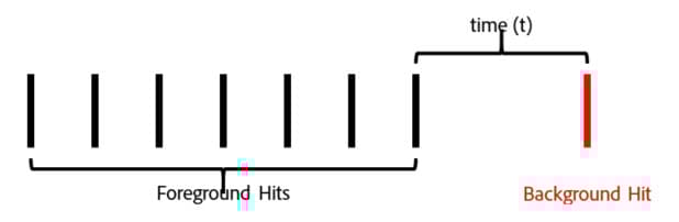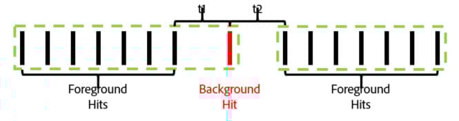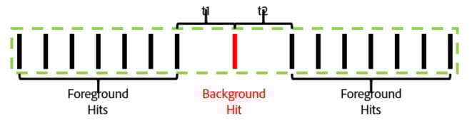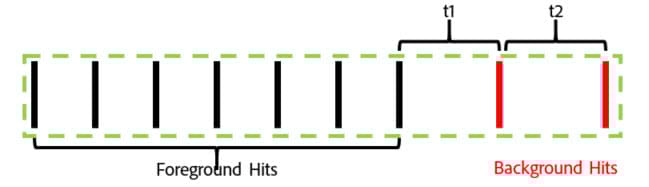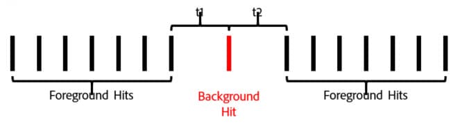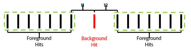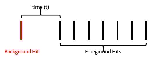Example 1: A background hit occurs some time period (t) prior to a series of foreground hits.