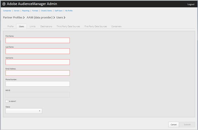 Is Admin: Make this user an Audience Manager administrative user. An administrator has all Audience Manager user roles for this partner.