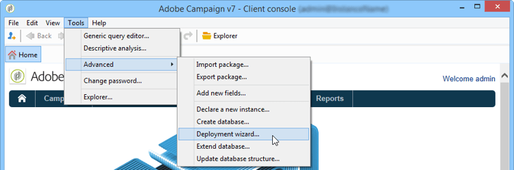 To start the deployment wizard, select Tools > Advanced > deployment wizard.