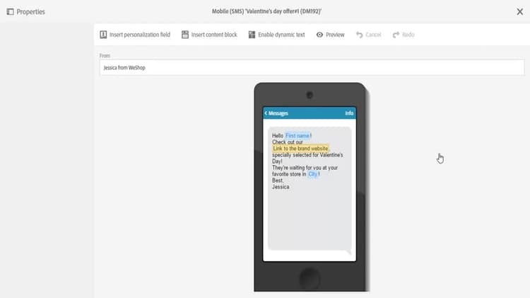 Creating an SMS delivery is very similar to creating a regular email. The following steps describe the configuration that is specific to this channel. Refer to Creating an email for more information on other options.