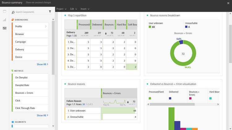 The Bounce reasons table contains the available data for the types of errors that caused bounces for each delivery: