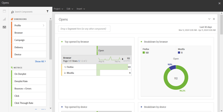 The Opens report identifies the deliveries that have been most viewed by recipients.