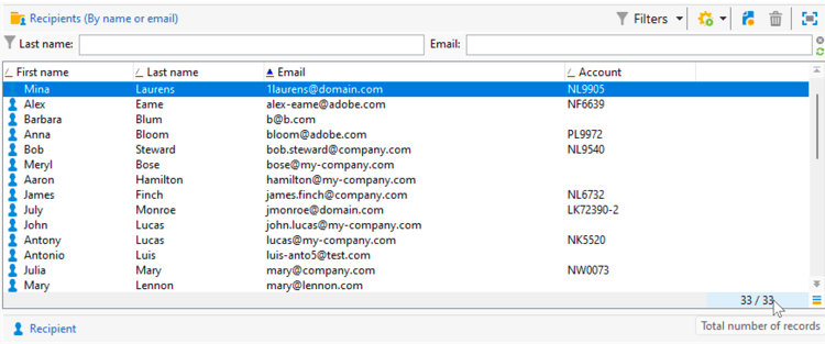 By default, setting parameters apply to all lists with the corresponding folder type. When you modify how the list of recipients is displayed from a folder, this configuration is applied to all the other recipient folders.