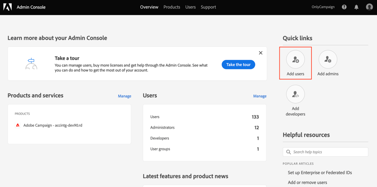 To add a new product profile to Adobe, you must first create it in Campaign Client Console, and then add it in the Admin Console.
