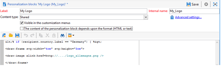 Create a new “My Logo” personalization block with “My_Logo” as an internal name.