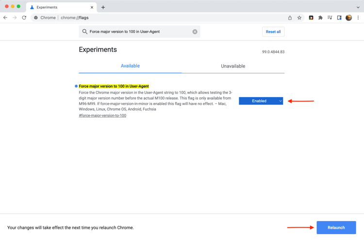 To test the Google Chrome 100 user agent on your own web apps, you can enable this test using the following steps: