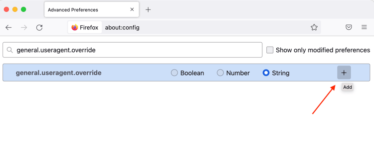 To change your user agent back to its default, simply go back into about:config and search for general.useragent.override setting again. When it appears, click on the trash icon to delete the setting, and relaunch the browser.