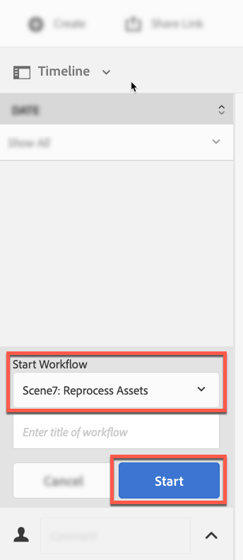 From the Start Workflow drop-down list, choose Dynamic Media Reprocess.