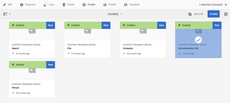 - Enable your Content Fragment Models for use when creating Content Fragments.