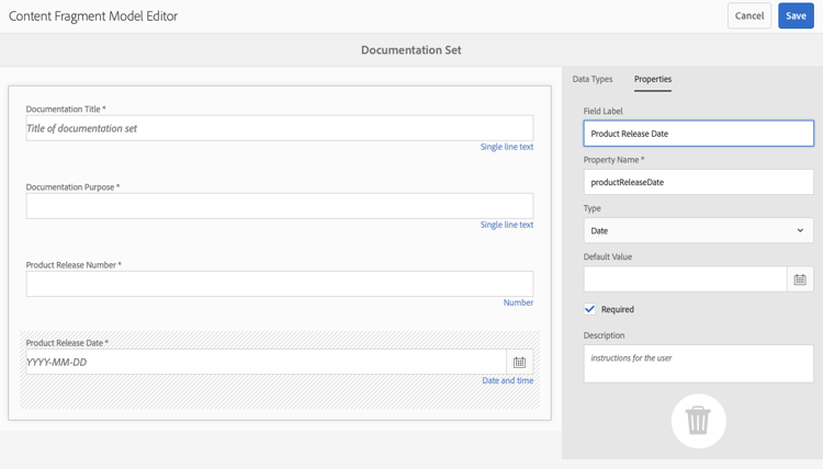 Content Fragment Model - Properties content-fragment-model-properties