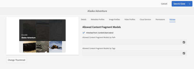 - The Policies for Allowed Content Fragment Models.