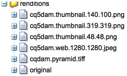 content/dam/<locate your asset>/jcr:content/renditions.The following graphic is an example of an asset’s renditions.