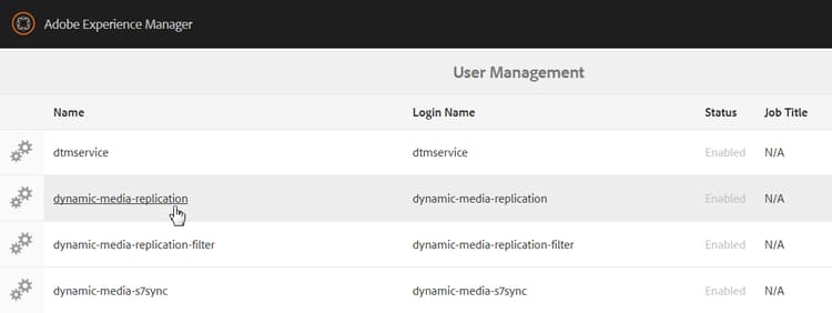 On the User Management page, navigate to the dynamic-media-replication user, then select to open.
