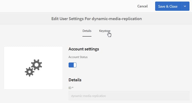 Set up replication authentication on author so you can replicate images to the Dynamic Media image delivery service. You first obtain a KeyStore and then save it under the dynamic-media-replication user and configure it. Your company administrator received a welcome email with the KeyStore file and necessary credentials during the provisioning process. If you did not receive this information, contact Adobe Customer Support.