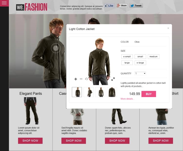 You can see how these steps are applied to the demo website to fully integrate a shoppable interactive image with the Quickview code. Earlier, the structure of the Quickview URL was identified as the following: