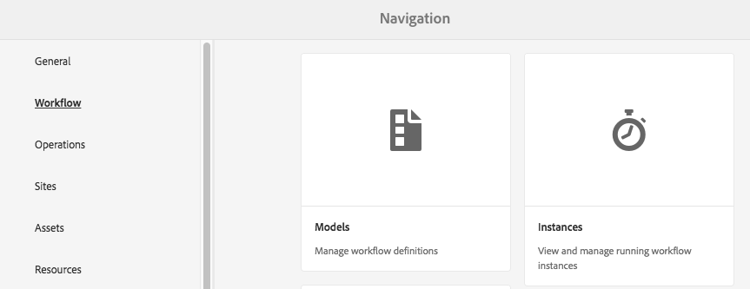 In Experience Manager, select Tools > Workflow > Models.