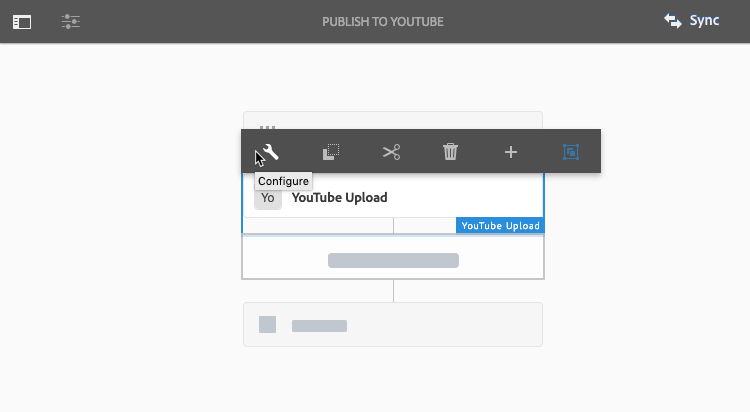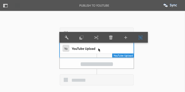 On the Publish to YouTube workflow page, near the upper-right corner, select Sync.