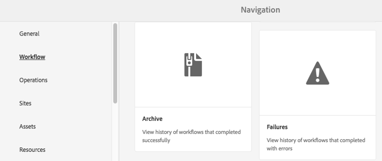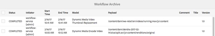 note note NOTE It can take a long time for failure/error messages to finally be recorded due to multiple workflow configurations on retries, retry delay, and timeout from https://localhost:4502/system/console/configMgr, for example: - Apache Sling Job Queue Configuration