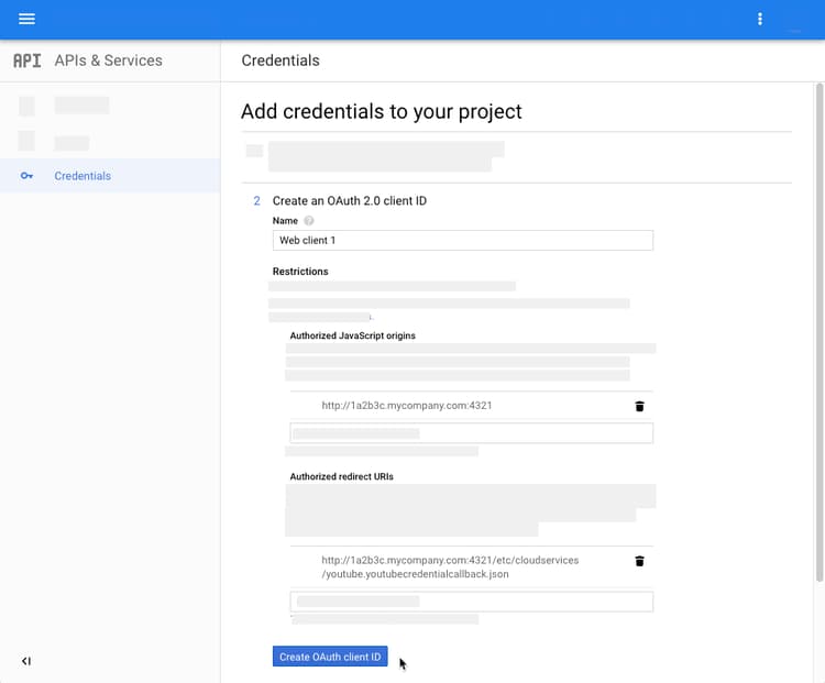 https://1a2b3c.mycompany.com:4321/etc/cloudservices/youtube.youtubecredentialcallback.jsonNote: The path example above is intended for demonstration purposes only.