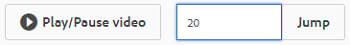 Seek to a specific point in the video, specify the time in seconds in the text field and click Jump. For example, to skip the first 20 seconds of video, enter 20 in the text field.