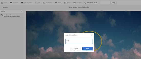 To view it in the timeline, click an annotation. To delete the annotation from the timeline, click Delete.
