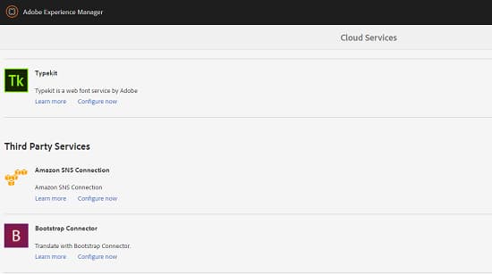 Click the Experience Manager logo, and navigate to Tools > Deployment > Cloud Services.