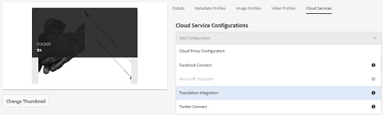Applying translation cloud services directly to your asset folder eliminates the need to configure translation services when you create or update translation workflows.