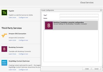 Specify a title and a name for the connector, and then click Create. The custom connector is available in the list of connectors in the Cloud Services tab described in step 5 of Applying the translation services.