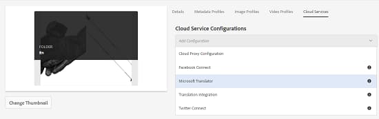 From the Cloud Service Configurations list, choose the desired translation provider. For example, if you want to avail translation services from Microsoft, choose Microsoft Translator.