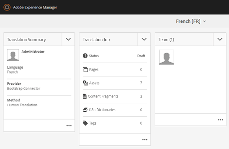 If you want to apply a custom connector for the translation services you want to use in translation workflows. To apply a custom connector, first install the connector from Package Manager. Then, configure the connector from the Cloud Services console. After you configure the connector, it is available in the list of connectors in the Cloud Services tab described in Applying the translation services. After you apply the custom connector and run translation workflows, the Translation Summary tile of the translation project displays the connector details under the heads Provider and Method.