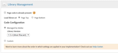 10. Expand Library Management, and ensure that Load Library at is set to Page Top.