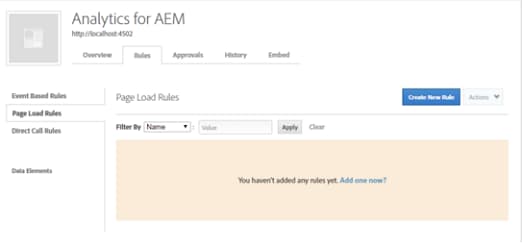 5. In the Rules tab, select Page Load Rules from the navigation pane and click Create New Rule.