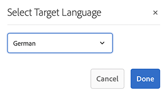 In the Select Target Language dialog, use the drop-down to select the language and click Done.