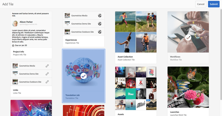 In the Add Tile window, click Translation Job and then Submit.