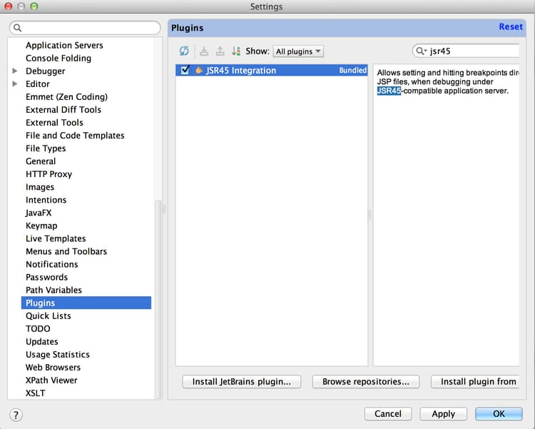 - Navigate to the JSR45 Integration Plugin and select the check box next to it