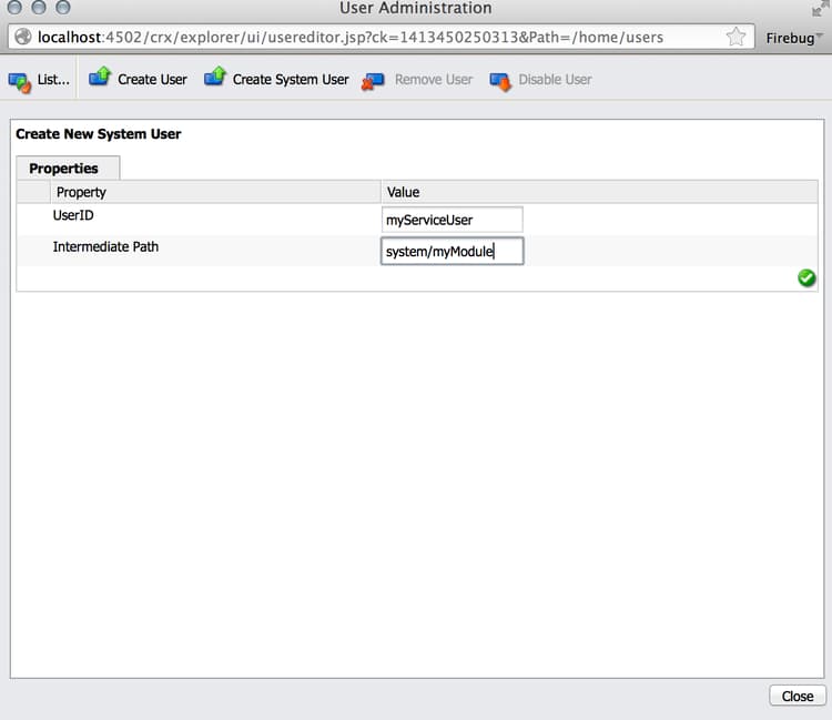 3. Next, create, and name your system user. To create the user as a system one, set the intermediate path as system and add optional subfolders depending on your needs:
